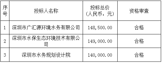 乐鱼科技生态园区项目水土保持服务于2019年5月14日在深圳市建设工程材料设备询价采购网络服务平台(网址:http://www.51xjcg.com/)进行公开询价采购,招标控制价为150,000.00元。在投标截止时间2019年5月23日11时内共有3家单位递交了投标文件。经评标委员会根据招标文件既定评标办法(经评审的最低投标价法)评议,现中标结果已报东部公司招标工作小组定标会议确认,特此公示如下: