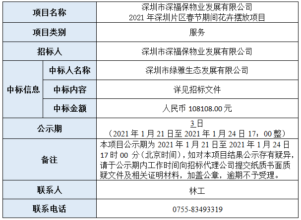 深圳市乐鱼物业发展有限公司2021年深圳片区春节期间花卉摆放项目已完成评审,现将本项目评审的相关情况及结果进行公示,具体内容如下: