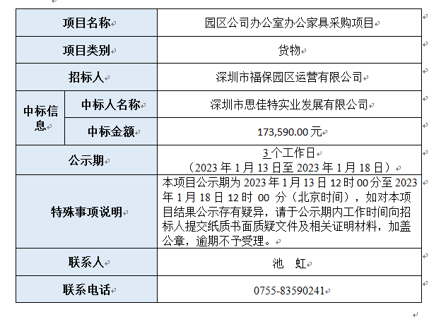 园区公司办公室办公家具采购项目已完成评审,现将本项目评审的相关情况及结果进行公示,具体内容如下:
