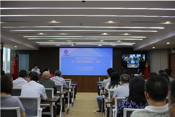 为进一步加强和抓实合同管理工作,强化风险防范意识,提升集团公司规范化管理水平,近日,审计部法务室组织召开合同法律风险防控培训及《合同管理制度》宣贯会,集团系统近90人参加。集团董事长谢涛、总经理王昌栋、监事会主席何桂平、副总经理蒋云凤、尹忠华出席会议。