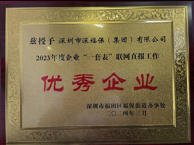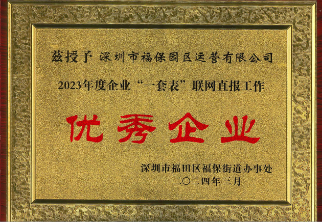 近日,集团公司与园区公司被福田区福保街道办事处授予2023年度企业“一套表”联网直报优秀企业荣誉称号。