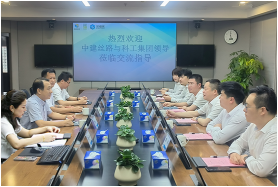 7月15日,中建丝路城开投资有限公司董事长才继超、中建科工投资有限公司助理总经理孔庆聪一行到访集团,与谢涛董事长、王昌栋总经理等座谈交流。